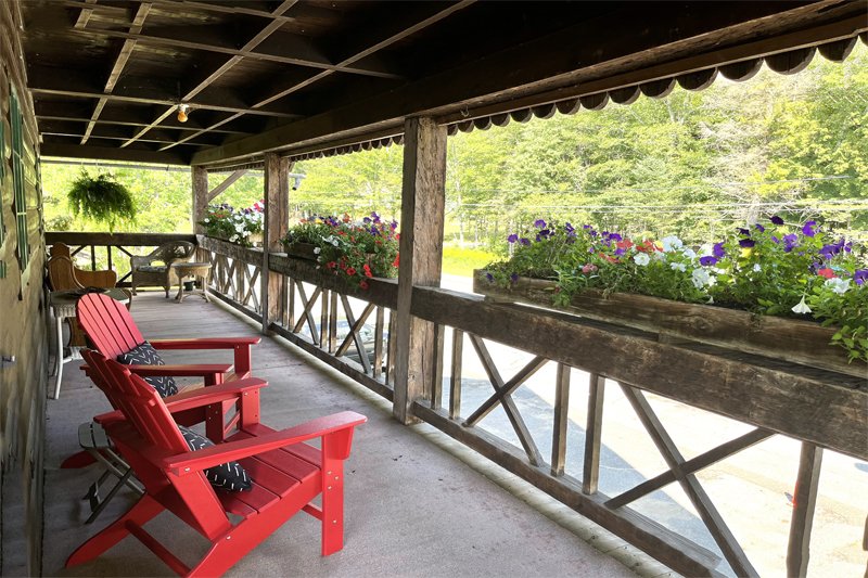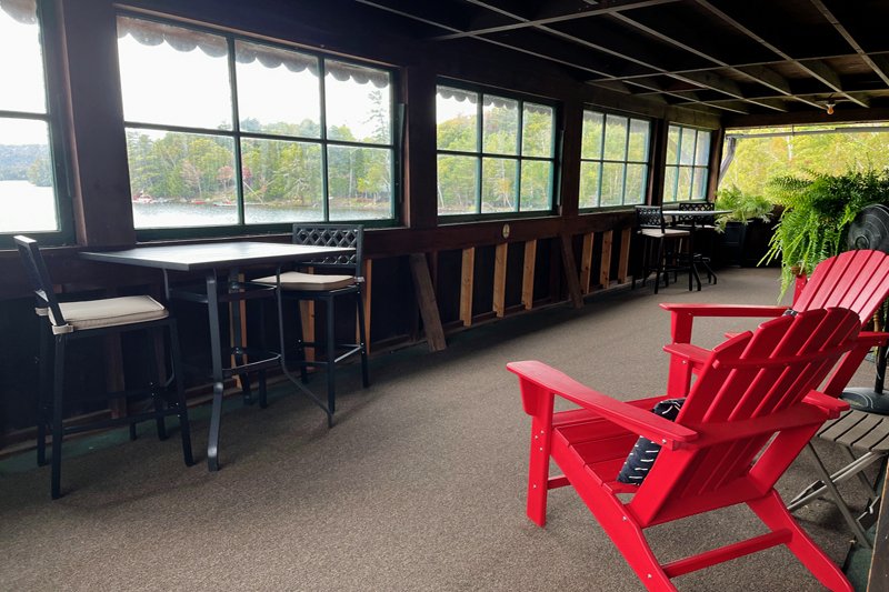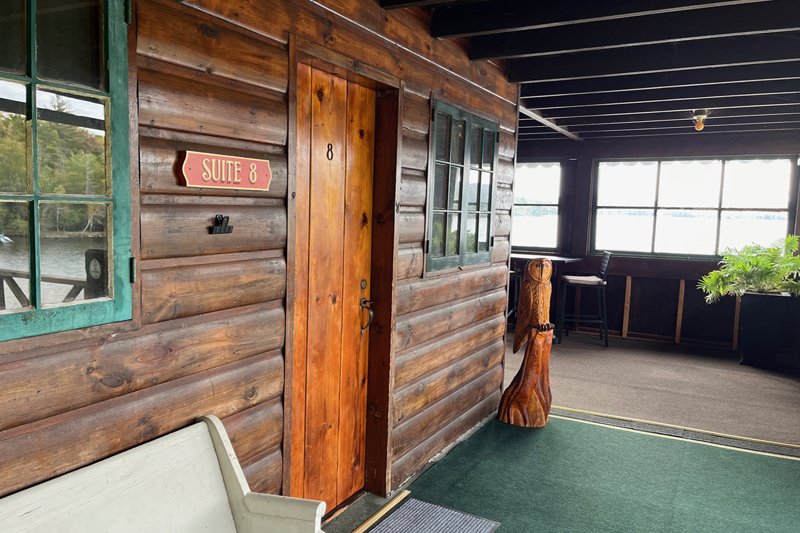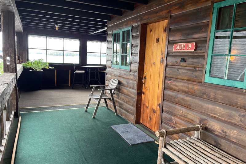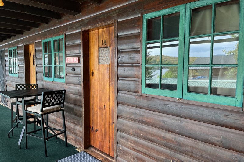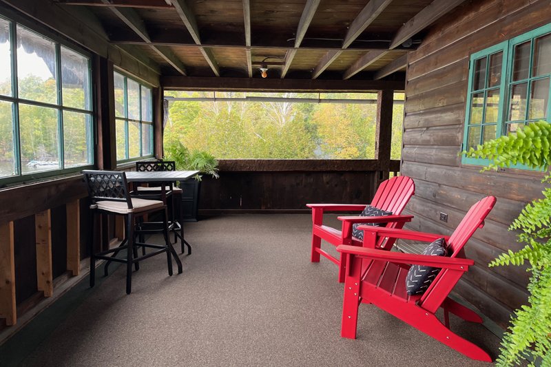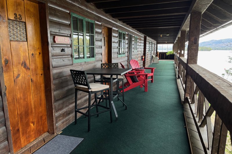 Lake views from your outdoor covered deck space. One room with a new full kitchen, queen bed and new private bath with an over-sized shower. Enjoy personal outdoor deck space that looks over Blue Mountain Lake. There are no children or infants allowed in the deck rooms.